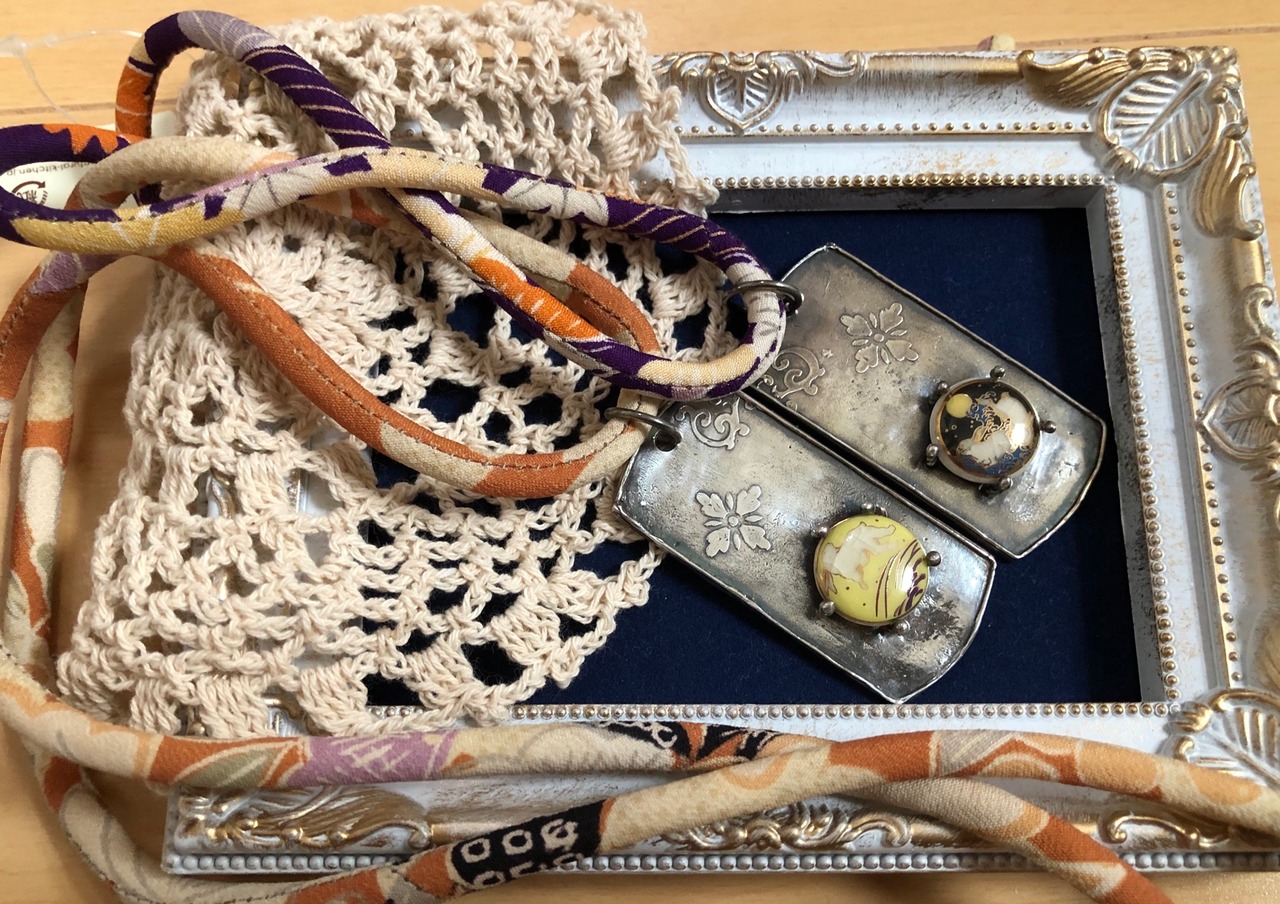 その薩摩ボタンをシルバーアクセサリと融合させてお洒落なドッグタグへ仕立てました。