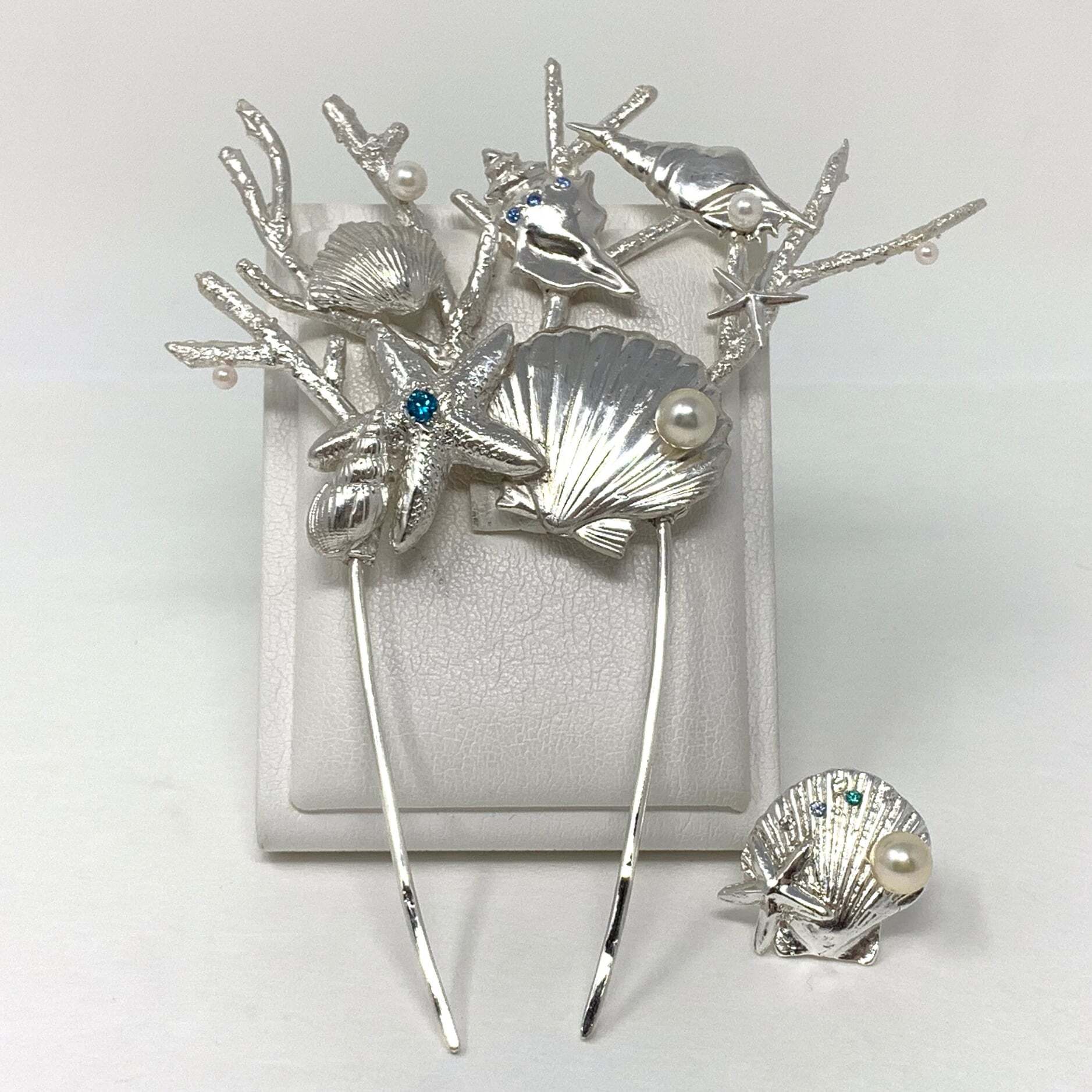 海の女神様が大事にしている宝物をイメージして作られた簪と帯留のセットです。